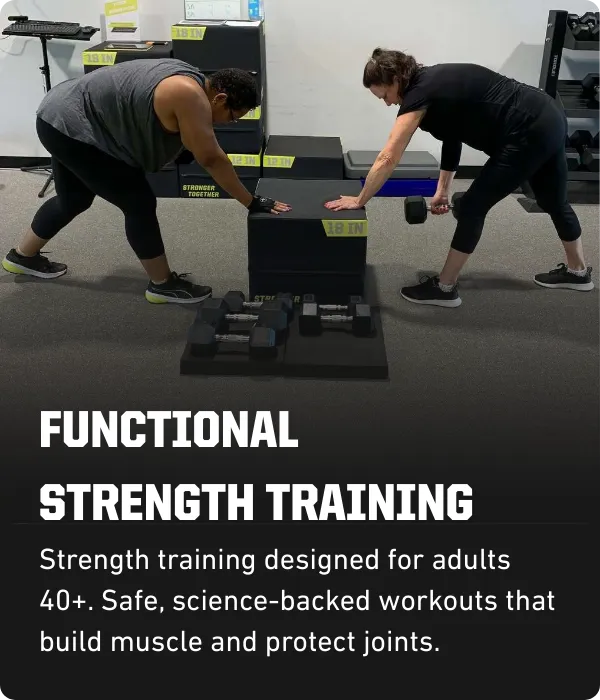 Yes—while we welcome adults of all ages and fitness levels, our programs are uniquely tailored for adults 40+. Whether you’re brand new to strength training or returning after time off, our expert coaches and supportive small group format ensure you feel confident, safe, and empowered every step of the way.